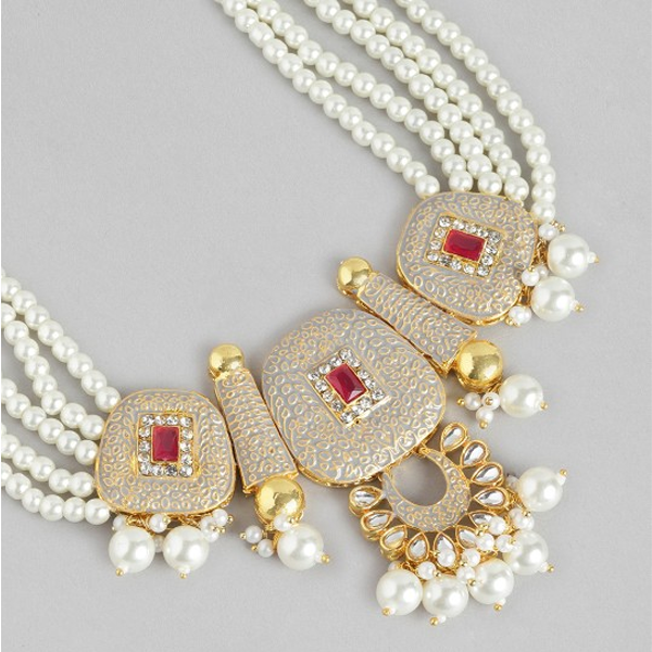 Gold-Plated AD & Pearl Jewellery Set